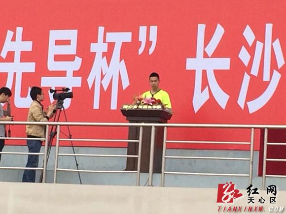 “先导杯”开幕式,天心区青年足球队球员代表喻欣代表所有参赛运动员进行宣誓。