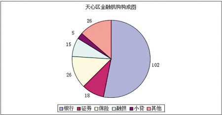 如今,天心区已有金融机构192家。其中包括华融湘江银行、国家开发银行、中国进出口银行、中国农业发展银行、光大银行、北京银行、花旗银行、东亚银行、湘财证券、方正证券和中国人保等金融机构湖南总部,基本形成了以银行、证券、保险机构为产业核心,以投资、信托、期货、基金公司为补充,以律师事务所、会计师事务所、金融服务公司为产业支撑的多元发展格局。