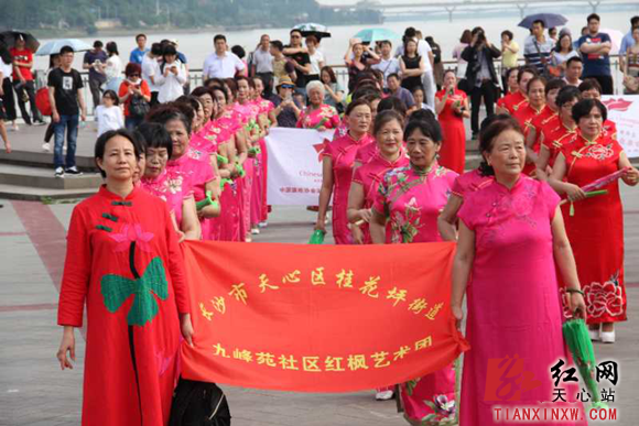 九峰苑社区红枫艺术团模特队参加旗袍秀活动。