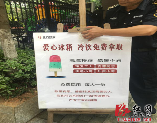 9月2日,青园街道友谊社区地铁口网格华城北小区业主严女士通过联系湘府华城客户服务中心,捐献出一台“爱心冰箱”。提供农夫山泉矿泉水,为高温下快递哥、保洁人员送去一份“清凉”。