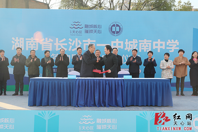 “长沙市一中城南中学落户暮云片区,填补了天心南部片区无高中的教育空白,必将给天心教育事业发展注入强大动力,为促进区域教育整体高位均衡发展具有重要意义。”天心区委书记朱东铁在致辞中表示,近年来,天心区始终坚持以人民为中心的发展理念,将教育作为九大民生造福工程的重要内容,作为最重要的民生、最重要的职责、最重要的基础来抓,长沙市一中城南中学的建设,是天心区推进教育优质均衡发展的重要举措,也是继天心区与长郡、雅礼、明德中学合作办学之后,在品牌引进上迈出的又一大步,天心区将继续秉承精诚合作、互利共赢的原则,进一步创优学校建设环境,举全区之力推进学校项目建设。