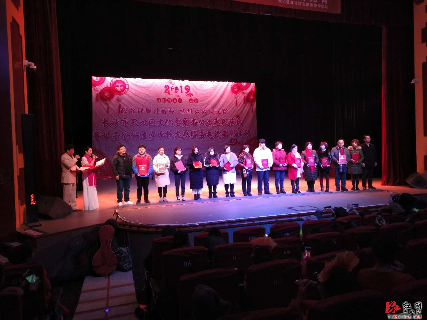 金猪抱福,情满元宵。2月18日下午,坡子街街道联合天心区文化馆、天心区文化志愿者协会在湘江剧院举办“红红火火过新春 载歌载舞闹元宵 ”惠民演出暨坡子街街道学雷锋志愿服务先进表彰活动。活动共聚集辖区13支文化艺术团队、12支志愿者队伍、道德模范、中国好人、环卫工人代表等400余人参加。