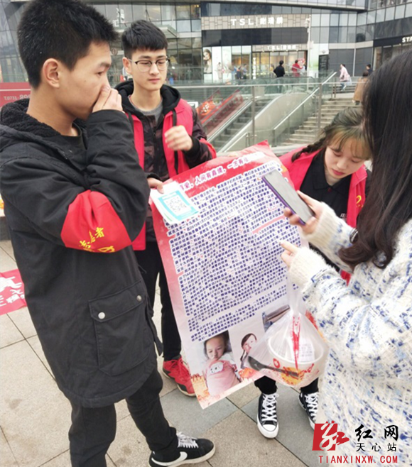 3月16日, 长沙市天心区文源街道状元坡社区党总支联合中南林业科技大学的学生志愿者分别在香樟路口、德思勤广场为天心区状元坡社区湘瀚小区的白血病患者周沐梓进行募捐活动。
