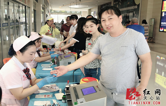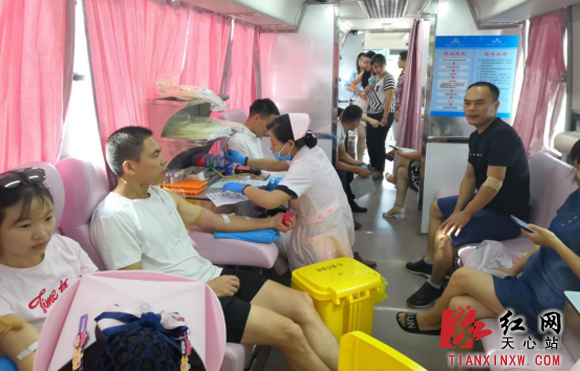 早上7点半,湖南鑫远·鑫悦汇广场前坪就排起了长队,他们都是街道机关、社区、单位职工,赶早过来参与义务献血。长沙的天气骄阳似火,却没有阻止献血志愿者的热情,在血液中心工作人员和志愿者的指引下,大家有序排队,认真了解献血知识、填写资料和义务验血,通过前期严格筛查后,符合献血标准的人员纷纷撸起袖子,接受采血。