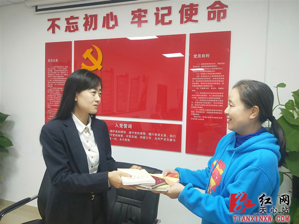 党员干部上门送学。胡爱民同志是支部的一名退休党员,为帮助她自主学习,集团领导把《习近平新时代中国特色社会主义思想学习纲要》《习近平关于“不忘初心、牢记使命”主题教育论述摘要》等学习内容送到她手中,胡爱民高兴地说,自己虽已经退休,但思想不能退伍,要活到老学到老,把党的十九大精神和习近平总书记的重要讲话精神学懂学透。天心城投集团为退休老党员“送学上门”,为他们指明了学习的方向,拓宽了学习的渠道,有效地提升了他们的学习成效,确保了党员理论学习不掉队,充分体现集团党支部的人文关怀。