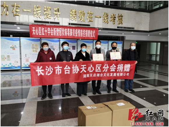 3月2日上午,台资企业湖南天启湘台文化发展有限公司、花之林餐饮管理(湖南)有限公司向天心区红十字会捐赠一批医用口罩及物资,用于支援抗击疫情。