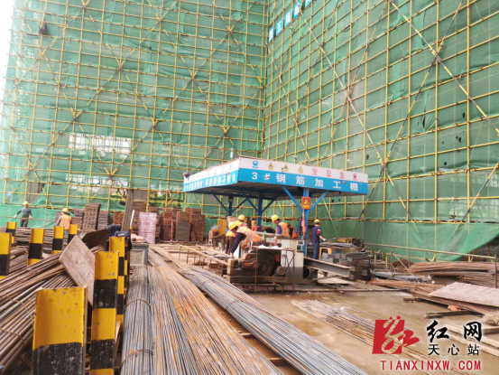雨后初晴,长沙市天心区裕南街街道重点项目施工现场,高耸的塔吊挥舞着悠长铁臂,钢管架密如织网,挖掘机、装载机及大型装载车来回穿梭,呈现出一幅幅热火朝天、你追我赶的繁忙景象。
