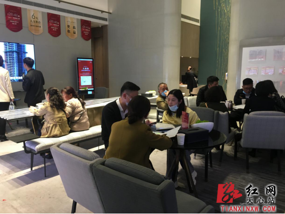 走进卓越江岸售楼大厅,现场一片火热。看房的、洽谈的人员络绎不绝。据项目负责人介绍,2月10日开始,售楼部便安排了人员值班,为提高房屋交易率,于疫情期间开通了线上直播卖房,项目部也提供了优惠政策和团购活动以刺激消费。